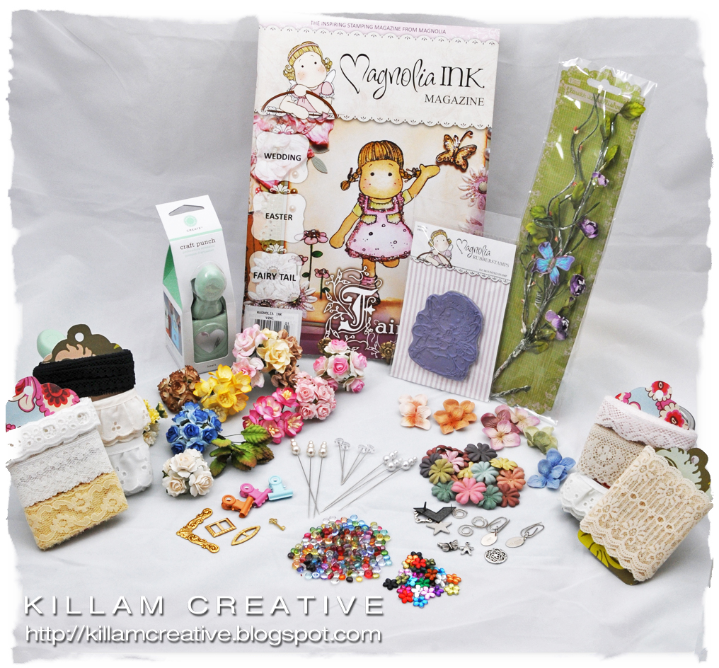 - Embellishments - Homemade chiffon flower; Mulberry flowers (coming soon to the store!); lace and miscellaneous from stash